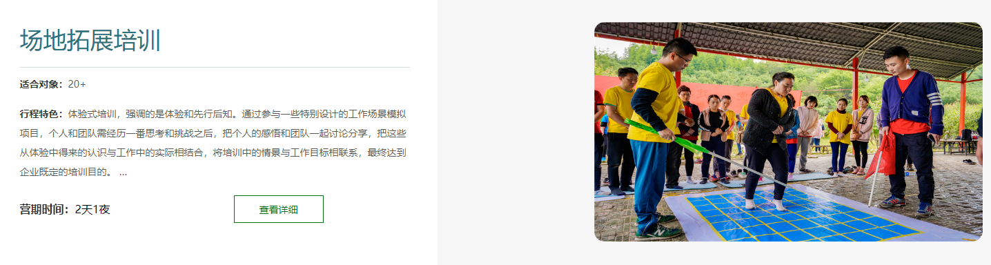 体育+团建、文化+团建、情景+团建、角色+团建、旅游+团建、沉浸式沙盘、潜训等